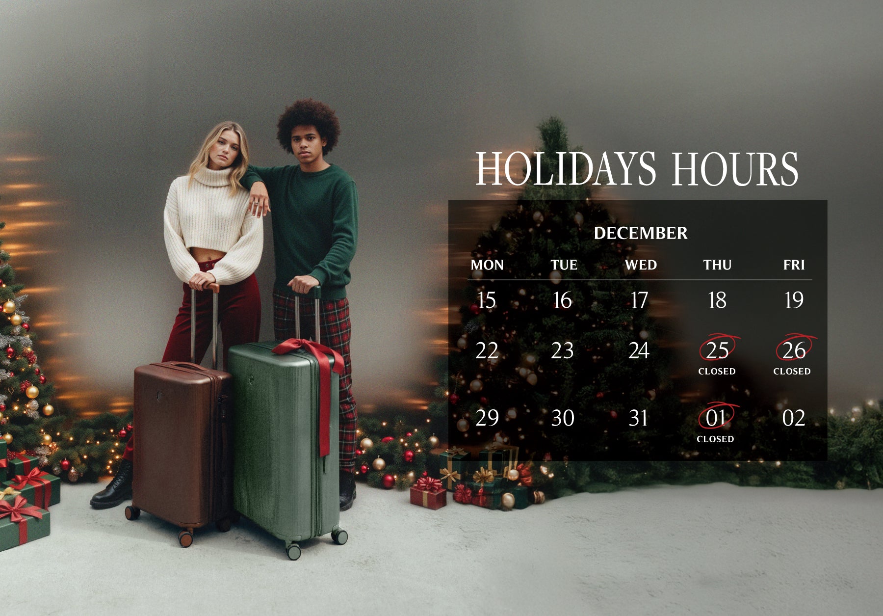 "Orders submitted December 25–26 and January 1st, 2026, will be processed and shipped on the following business day."