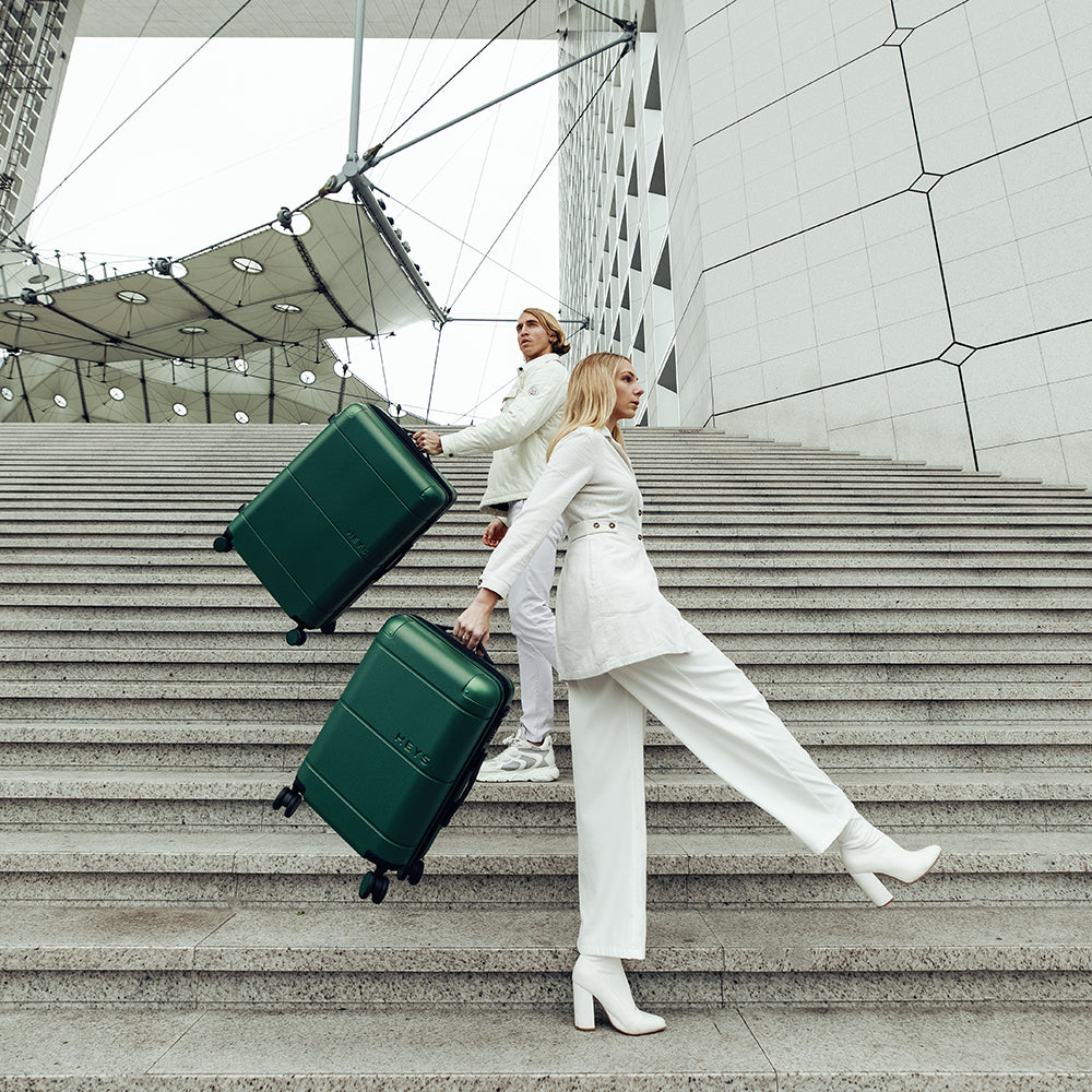 - A chic, modern design with etched Heys logo, a brushed sand finish and trim elegantly colour-matched to the shell
